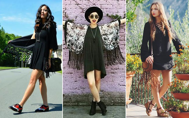 Boho: Para deixar o seu visual mais setentinha, aposte nas silhuetas um pouco mais soltas e combine o vestido com acessórios de camurça (se rolar alguma peça na cor camel, como na última foto, melhor ainda). Franjas e quimonos também são bem-vindos!